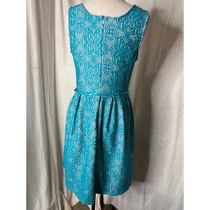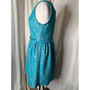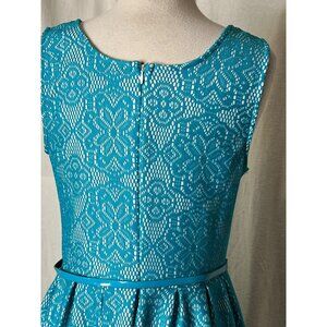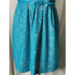George Women's Teal Lace Dress With Belt Size L Midi Summer