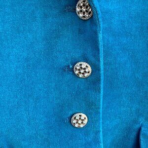 George Womens Teal Velvet Rhinestone Button Single Breasted Glam Blazer Jacket 1