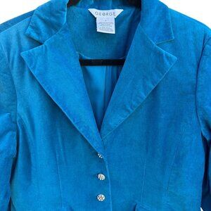 This elegant teal blazer by George is crafted from soft velvet, offering a refined touch to professional attire. Adorned with rhinestone buttons, it provides a sophisticated flair suitable for business meetings or formal gatherings. The tailored fit ensures a polished silhouette, while the pocket details add functionality.