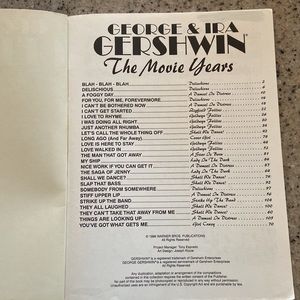 George and Ira Gershwin, the movie years by Warner Brothers publications. Songs from movies from the early ages. Excellent condition!