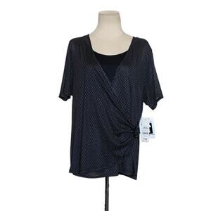 George black polka dots short sleeves faux wrap blouse size 2X