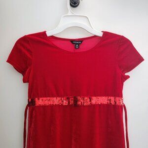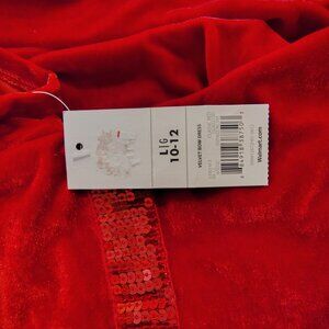 George brand Short sleeve red velour dress with sequined belt (size L 10-12)