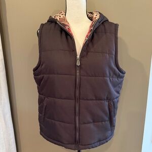 George by Mark Eisen Chocolate Puffer Hooded Vest Zip Up, Size Large
