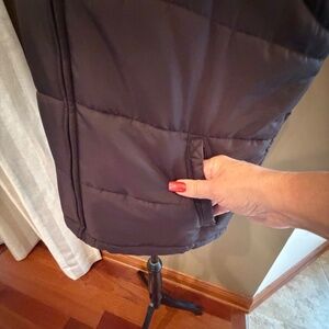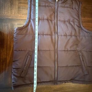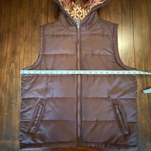 George by Mark Eisen Chocolate Puffer Hooded Vest Zip Up, Size Large