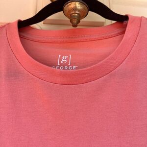 The George T-shirt is a plain, peach-toned short-sleeved top made from a comfortable polyester and cotton blend. It is in great condition and sized L (42-44), offering a relaxed and easy fit for everyday wear.