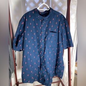 George sz 3X short sleeve preppy navy blue shirt with pink flamingoes
