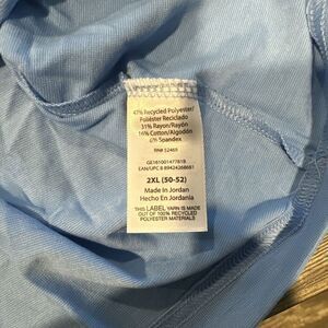 This George Men's Blue Polo with Short Sleeves in Size 2XL is a versatile and comfortable option for men. Made from a blend of polyester, nylon, spandex, and cotton, this polo features a collared neckline, pullover closure, and a relaxed fit. The shirt is machine washable and offers stretch for ease of movement. With a solid blue color and a spread collar style, this polo is suitable for various occasions including travel, activewear, and casual wear. Perfect for all seasons, this polo is great for activities such as walking, golf, and driving.