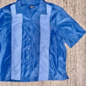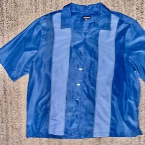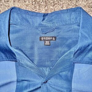 George Men's Blue Striped Button Down Short Sleeve Bowling Dress Shirt Size XXL