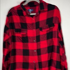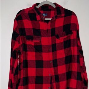 Stylish red and black plaid shirt by George. Features a classic button-up design.