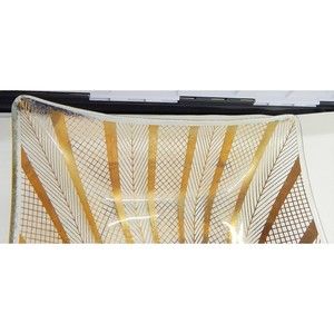 Georges Briard Glass Gold Abstract Bird Dove Herringbone Plate Tray 11 Inch