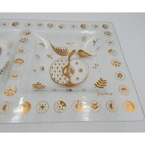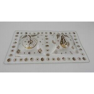 Georges Briard Gold Forbidded Fruit Divided Glass Signed Serving Relish Dish