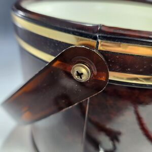 Perfect for entertaining & get togethers or the perfect gift for the contemporary design lover. This is a vintage ice bucket by famous mid-century designer Georges Briard. This is a faux tortoiseshell design with a plastic/lucite handle and knob. The interior is hard white plastic and it comes with a chrome ice tong. This does not have his signature on the bottom but I have seen others that are signed but this one likely never was (sometimes if these were sold as a set they were not marked or only had a sticker.)