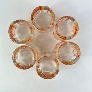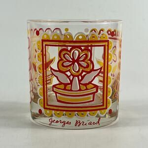 Georges Briard Mid-Century Lowball Glasses Set of 6 Red Yellow Flower Retro