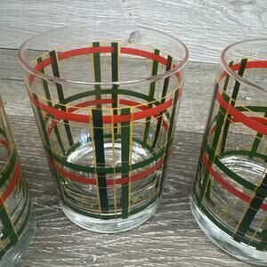 Georges Briard Rocks Glass Double Old Fashioned Red Green Gold Plaid 12oz~4 Pc