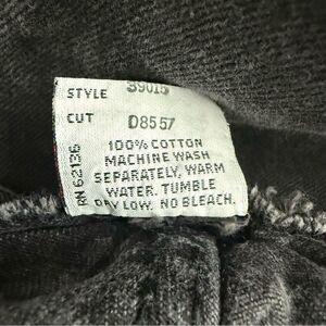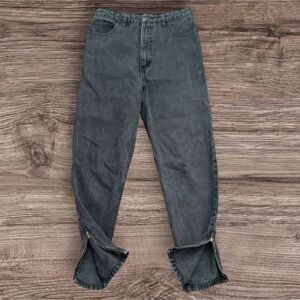 These black wash jeans boast a classic straight-leg silhouette and a high-rise waist, perfect for a timeless look. Crafted from sturdy denim, they offer a comfortable fit with a slightly worn-in, vintage appearance. Has Zipper Ankle