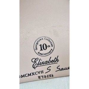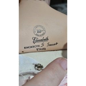 This stunning 18.5-inch porcelain doll from the Georgetown Collection by Sybille Sauer is a must-have for any collector. With beautiful light red curly hair and striking blue eyes, Elizabeth is a limited edition doll from the artist's edition series. The doll is dressed in a beautiful wedding gown and comes with accessories such as shoes and socks/tights, a display stand, and more.