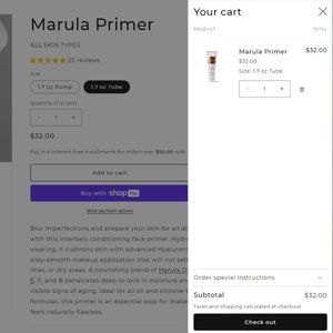 This is a beautiful smooth primer for every skin type. It has amazing reviews as well. 100% new. Only issue is the seal looks like it was poked through. Never used but seal is on just broken. That’s why the price is low. Just like you see in the photos. Blur imperfections and ensure an all-day radiant finish. Hydrating and long-wearing! A nourishing blend of Marula Oil and Vitamins A, E, F, and B locks in moisture and protects against visible signs of aging.