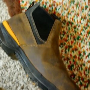 size 9.5 mens , non steel toe ankle work boots. Dark brown almost suede looking. Worn once about hour or hour half. Comes from pet friendly home.