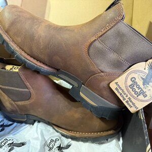Georgia Boot Eagle One Mens Sz 13 Wide Chelsea Work Boots Soft Toe Brown Waterproof GB00315. New in box. Box has some damage due to shipping/storage