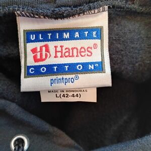 This Georgia Bulldogs sweatshirt is a men's size Large black UGA hoodie from Hanes. Made from a cozy cotton blend fleece material, this pullover hoodie has long sleeves, a hood, and a solid black color. The regular fit hoodie is machine washable and perfect for showing off your team spirit during football season or in the colder months of Fall and Winter. Show your support for the Georgia Bulldogs with this stylish and comfortable hoodie.
