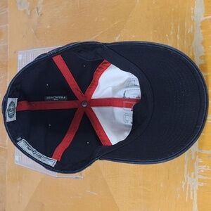 University of Georgia Bulldogs raised embroidered lettering spellout black & red fitted hat is in good shapew normal normal wear. Good wash wear and light fade. No hole's no stains, no loose threads. Fitted Size SM