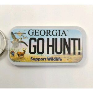 Georgia Keyring GO HUNT! Support Wildlife Keytag Key Holder Hard Rubber Material