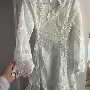 "Made from premium fabric, this dress is soft and breathable for all-day wear. The long-sleeved dress features a unique lace hook design that adds a touch of personality, while the fitted waist ensures a comfortable fit.