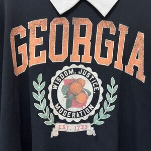 Get ready to turn heads with this adorable Georgia Peach preppy sweater! This oversized beauty in a size large is perfect for achieving that trendy, university-inspired look. The crisp white collar adds a touch of classic sophistication.