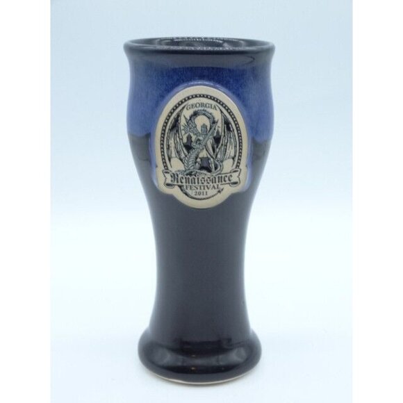 Georgia Renaissance Festival 2011 Stein Blue Drip Grey Fox Pottery Cup Mug