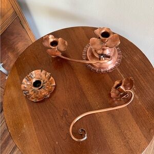 Georgian Copper Candelabra Twist 3 Candlestick Holders Rose Flower Broken