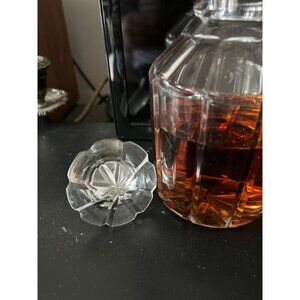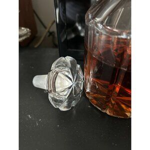The decanter is nominally straight sided and is beautifully cut in eight vertical columns or flutes with slice cut flat panels at the shoulder, leading to the neck. Each vertical column on the main body has two circular cut dimples , one at the top and one at the bottom of each column. The neck has three neck rings and the base is star cut, which are other features of this period. The decanter has a good matching eight sided mushroom cut stopper which we consider to be the original stopper.