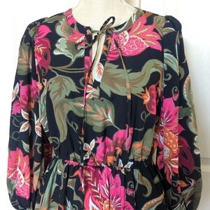 Elegant women's dress featuring a vibrant floral design. The black and pink colors create a striking look, perfect for any occasion. New with tags