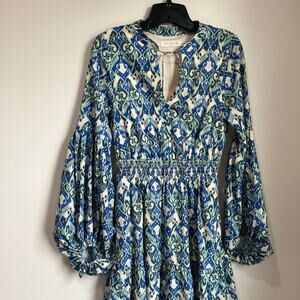 Georgie Long Sleeve Ballon Sleeve Front Tie Boho Mini Dress Size X-Small