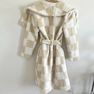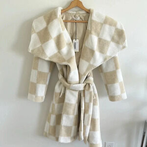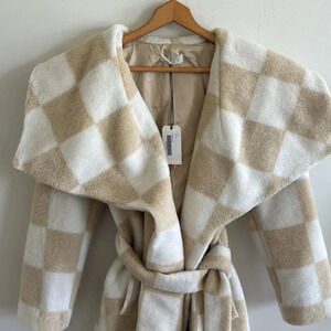 Georgie cream/camel tan faux fur fleece teddy wrap coat size small NWT