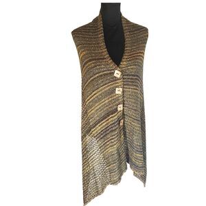 Georgina Estefania Green Tan Gold Button Up Shawl Shrug One Size