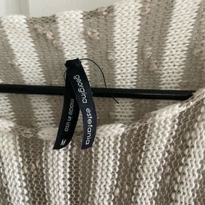 Georgina Estefania LINEN/COTTON LOOSE WEAVE STRIPE asymmetrical ARM top M