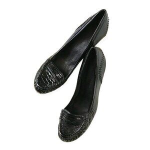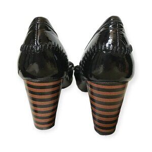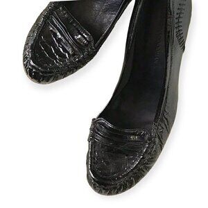 Georgina Goodman black crinkled patent loafer pumps, 38EU with round stripe hee