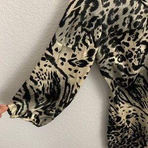 Georgiou Studio Animal/Leopard Print Blouse in Silver, Ivory, and Black. Size S.