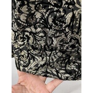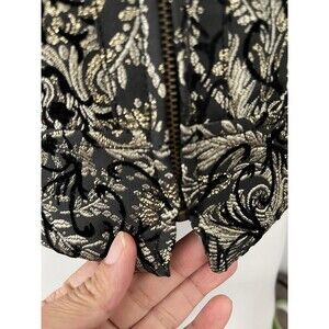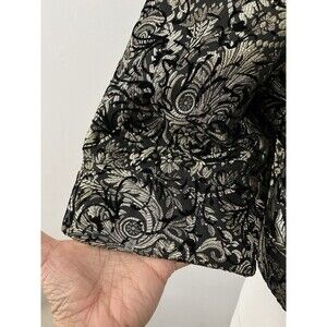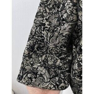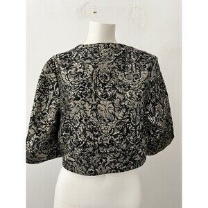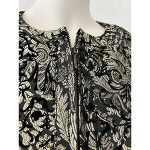 Georgiou floral Jacquard Jacket 10 Cropped 3/4 sleeve zip Black Gold Holiday NYE