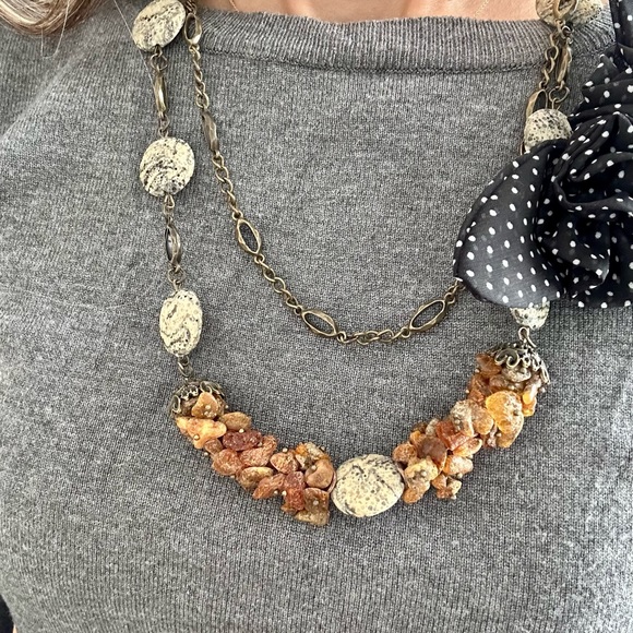 Georguose versatile sweater necklace w. Real Amber Stones
