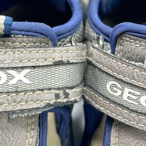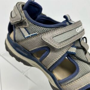 Keywords: Geox sandals, boys outdoor sandals, gray boys sandals, closed toe sandals, water-friendly sandals, breathable boys footwear, antibacterial sandals, antishock sandals, Italian patent design, hook and loop closure, boys walking sandals, boys water play shoes, EU size 36 sandals, US size 4 boys shoes, pre-owned boys sandals.