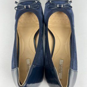 Geox Carey Block Heel Pumps D54V8A Blue Suede Patent Cap Toe size 41 US 10.5