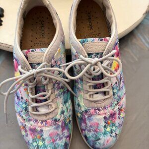 Geox Nebula 3 Sneakers. Nylon and suede upper. Pretty floral design. Feature Geox Respira net breathing system. Size 10 1/2. Excellent condition. Super comfortable. Smoke-free home.
