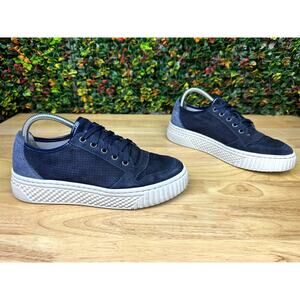 Geox Perforated Cup Sole Sneakers Shoes Platform Navy Blue White Womens 8.5 GUC
