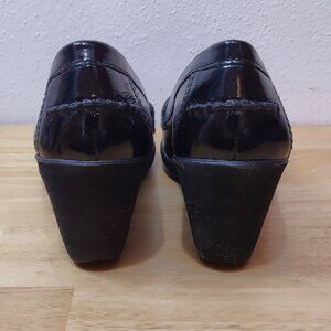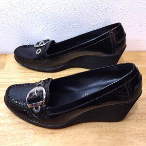 Geox Respira Black Patent Buckle Wedge Size 38 1/2 US 8.5 EUC