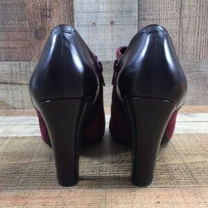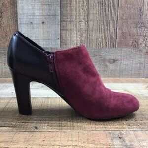 Geox Respira Red Black Brick Suede Glimmer Pumps Ankle Booties Womens 38.5 . Side zip closure. Full grain leather. 3.5 inch heel.