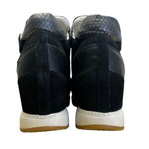 Geox Women’s Black Leather & Suede With Zip Closure Wedge Sneakers Sz US 9 -EU40