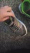 Has been hand washed to the best of my ability and sanitized. Velcro closure.