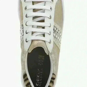 Geox sneakers womens size 9 Sand/ Gold DO2FED W Animal Print Back Great Preowned Condition. The marks are on the soles.