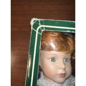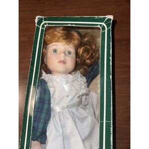 Geppeddo 1995 Porcelain Doll Blue Green Plaid Dress 15” Auburn Hair Green Eyes.